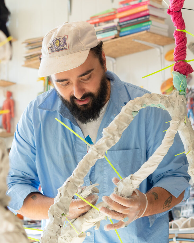 In het expressieve werk van Arash Fakhim (1987, Teheran) staan materialiteit, de losheid en snelheid van het gebaar en het spel tussen het platte vlak en ruimtelijkheid centraal. Een terugkerend thema in de praktijk van Fakhim is de wil om te botsen met de opgelegde regels van het medium. In plaats van te kiezen voor een meer traditioneel materiaal als metaal of steen voor een kunstwerk in de openbare ruimte, kiest hij voor polyurethaan, de grondstof van purschuim, dat hij met een waterdichte coating bedekt. Een metalen frame geeft vorm en stevigheid. De vorm en het oppervlak van de 60 meter lange buis bewerkt hij met de hand, om zo expressiviteit en losheid te benadrukken.