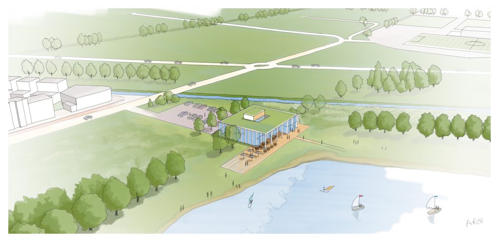 Als het aan Maarten Kamp ligt, zal over zo’n 16 maanden een prachtig horecapaviljoen verrijzen aan de zandwinplas bij de zuidelijke entree van Schuytgraaf. Samen met Bart van Es en Henk Korteweg ontwikkelde hij een concept dat past in de randvoorwaarden die de gemeente heeft gesteld voor horeca op die locatie. De Brasserie Schuytgraaf bestaat uit een grand café met goede dinerkaart en is gericht op bewoners van Schuytgraaf, recreanten en op zakelijke klanten. Het gebouw is transparant en open, met als kern de keuken en het sanitair. Aan de waterzijde komt een ‘speelse’ kant met terras en serre. Aan de wegzijde een zakelijke kant, met gratis wifi en op de verdieping flexplekken. Het concept gaat uit van een duurzaam gebruik van grondstoffen, zal vooral hout en glas toepassen en een groene dakbedekking krijgen. Gemeente Arnhem heeft toegezegd in september te laten weten of dit concept groen licht krijgt.