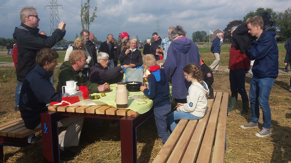 Bij de opening van de Cidergaard komt de regen inmiddels met bakken uit de hemel en wordt volop cider geproefd. De appels voor deze cider komt nog niet uit Park Lingezegen. De bomen zijn nog niet volgroeid. Josan Meijers proeft de cider en prijst de manier waarop de grond ontgonnen wordt: ‘Het is mooi om te zien, hoe ieder stukje verantwoord gebruikt wordt en geanticipeerd wordt op wat waarschijnlijk komen gaat.’