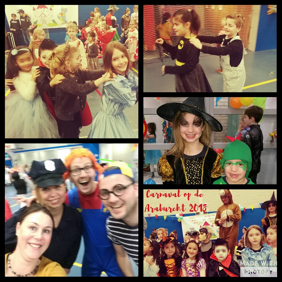 Voordat de voorjaarsvakantie begon, is op vrijdag 9 februari uitgebreid Carnaval gevierd op Basisschool De Arabesk. Voor de gelegenheid genoemd: De Araburcht. Juf Ank, compleet met zwaaistoplicht, was er ook.