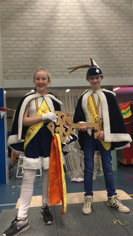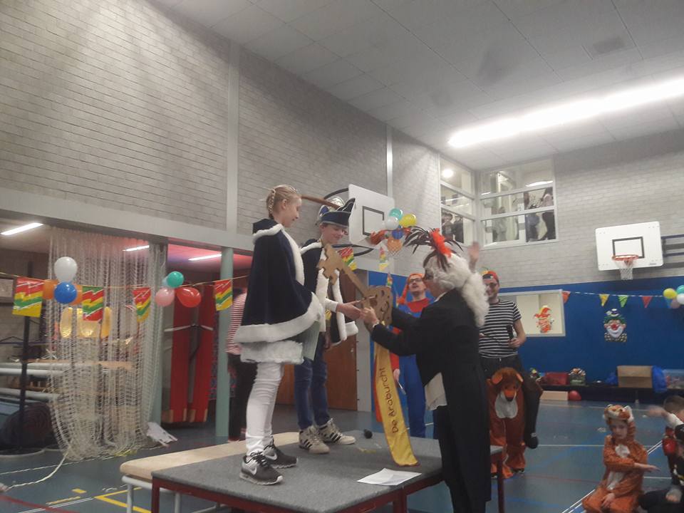 Prins Valentijn en Prinses Jasmijn waren een week eerder door de bovenbouw verkozen vanwege hun komische buutrede voor hun leeftijdsgenootjes. Directeur Mirjam van Polanen droeg ’s ochtends symbolisch de sleutel van de school over en reikte de Carnavalsmedaille uit. Vanaf dat moment had Mirjam niet veel meer te vertellen; Prins Valentijn en Prinses Jasmijn waren deze dag de baas en dit was hun feestje!