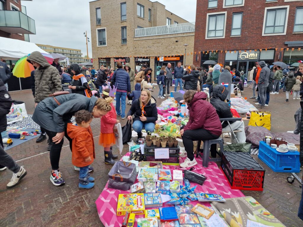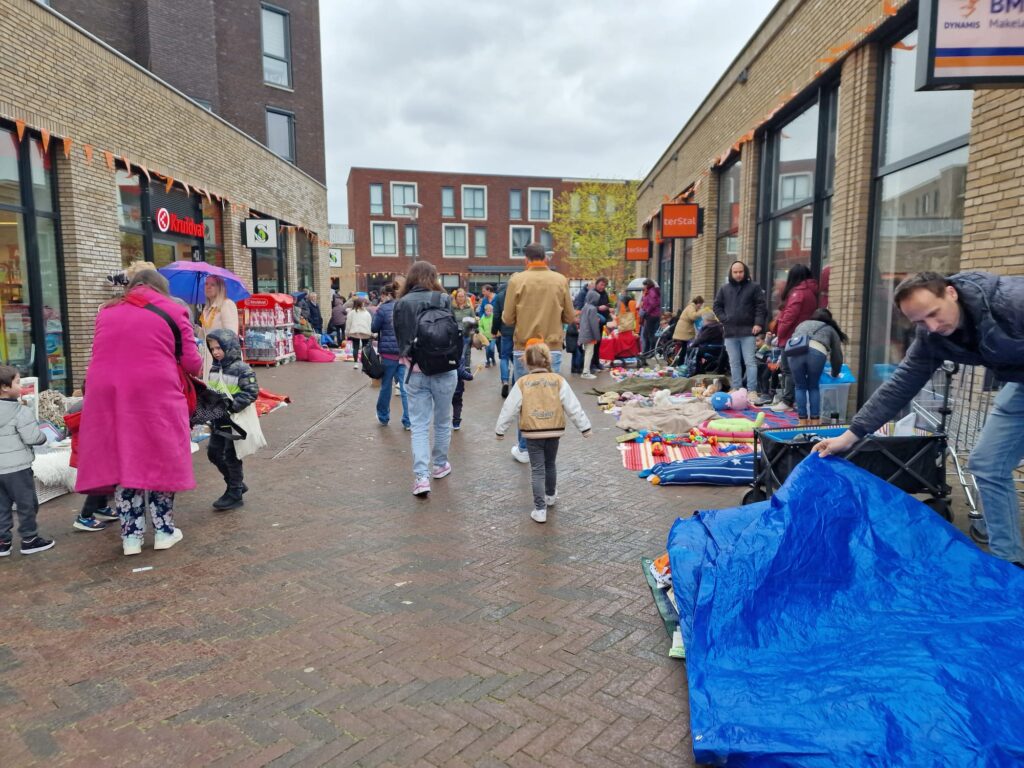 De kleedjesmarkt op Koningsdag was een succes te noemen. ‘s Morgens vroeg lagen er al veel kleedjes over de Fortunastraat en beide pleinen van ons winkelcentrum. Op het archeologisch waren er andere activiteiten. Er waren veel spellen, springkussens en er stond een grote rij voor het schminken.