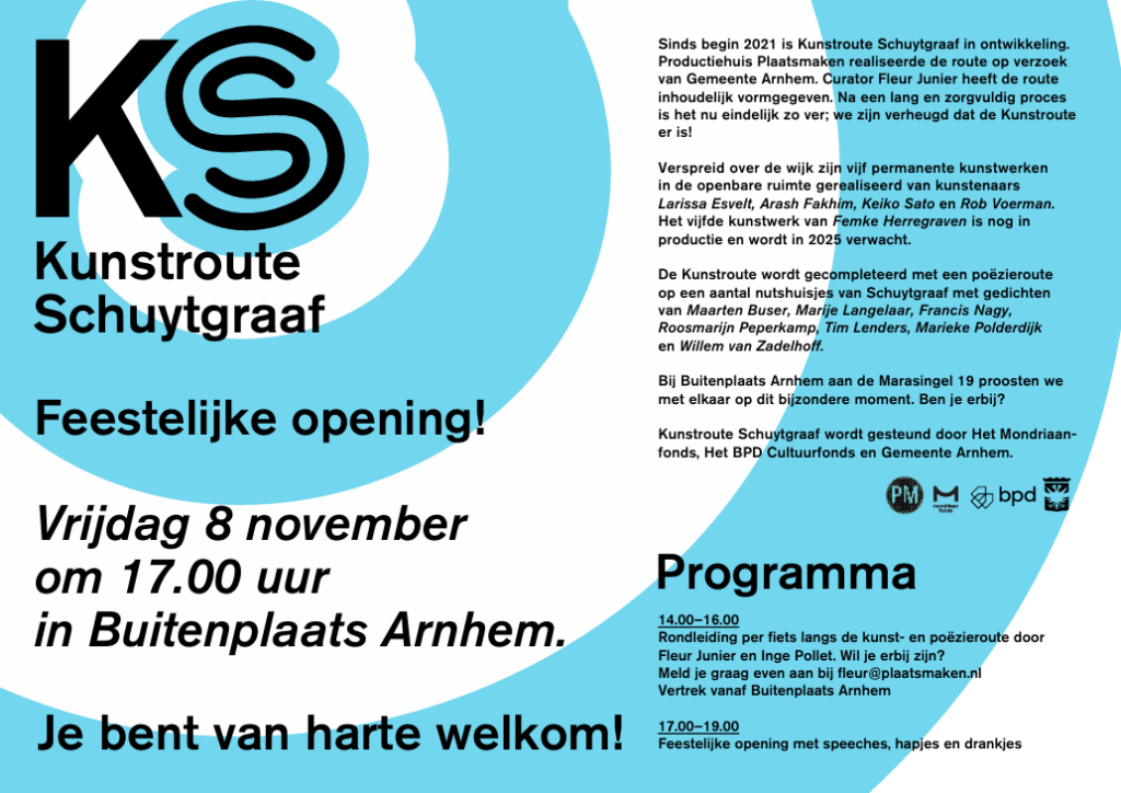 Meer informatie: www.plaatsmaken.nl of volg ons op Instagram Kunstroute_schuytgraaf