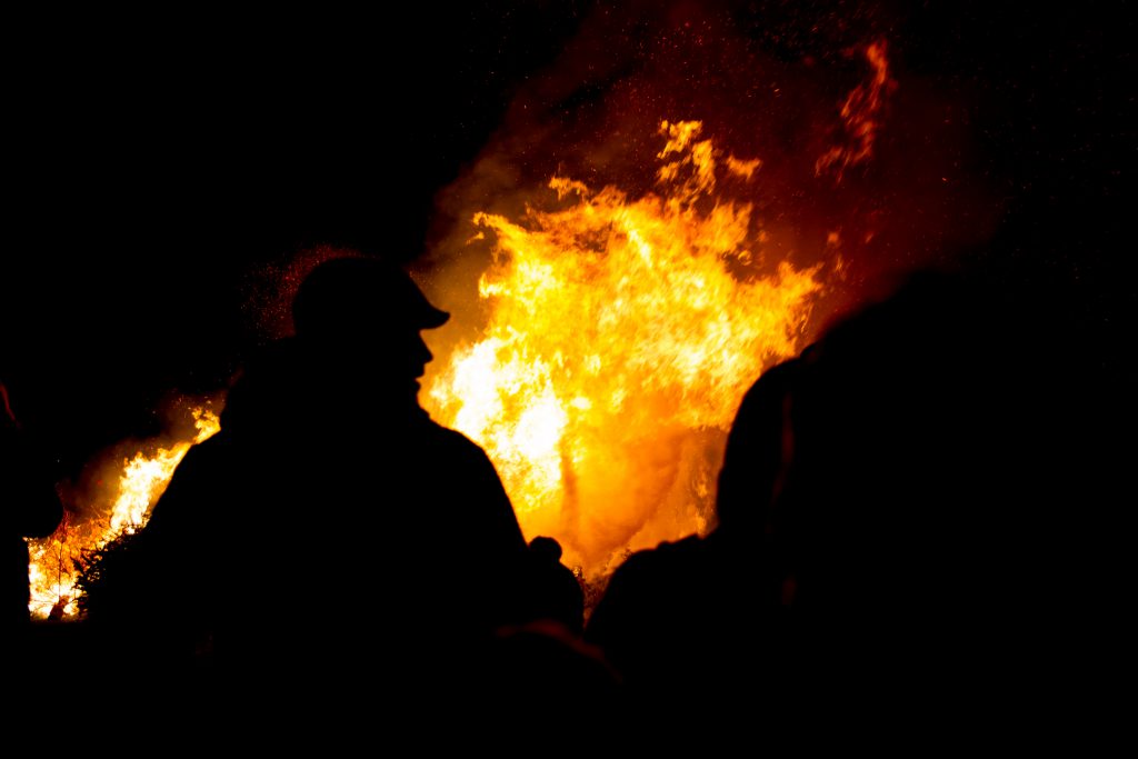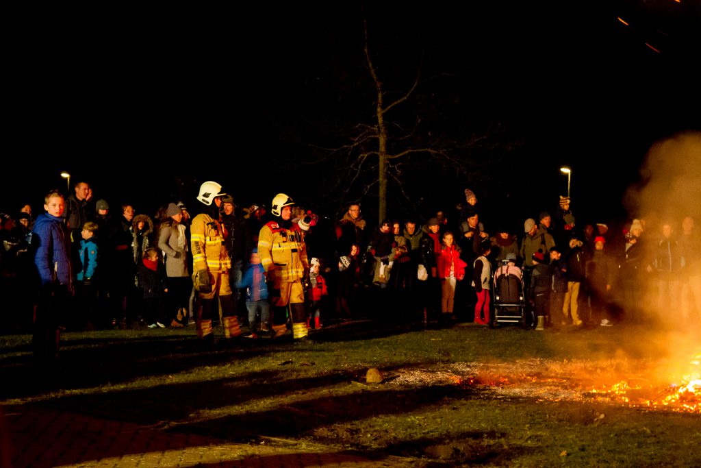 Iets na half zeven werd door Brandweer Arnhem-Zuid vakkundig de enorme stapel kerstbomen aangestoken. Ondertussen konden de kinderen ook de brandweerwagen van dichtbij bekijken en sommige mochten zelfs even in de wagen zitten!