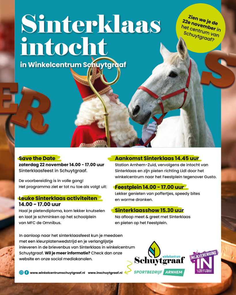 Gaan we er met z’n allen een geweldig feest van maken? Zien wij jou morgen ook om samen Sinterklaas en zijn Pieten te verwelkomen in Schuytgraaf?