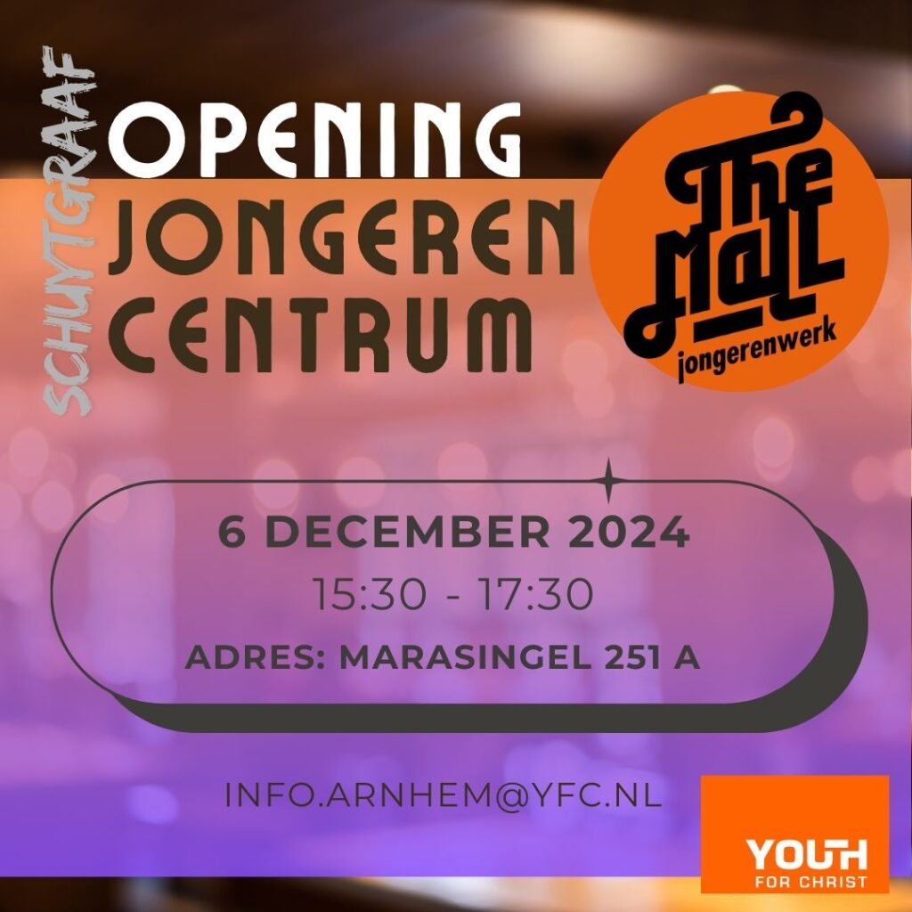 Vrijdag 6 december wordt in Schuytgraaf de nieuwe jeugdruimte “The Mall” officieel geopend. Op deze plek kunnen jongeren samen komen en elkaar ontmoeten. De ruimte is te vinden op Sportpark Schuytgraaf. De gemeente Arnhem en jongerenorganisatie Youth for Crhist (YFC) organiseren activiten voor jongeren tussen de 10 en 18 jaar.