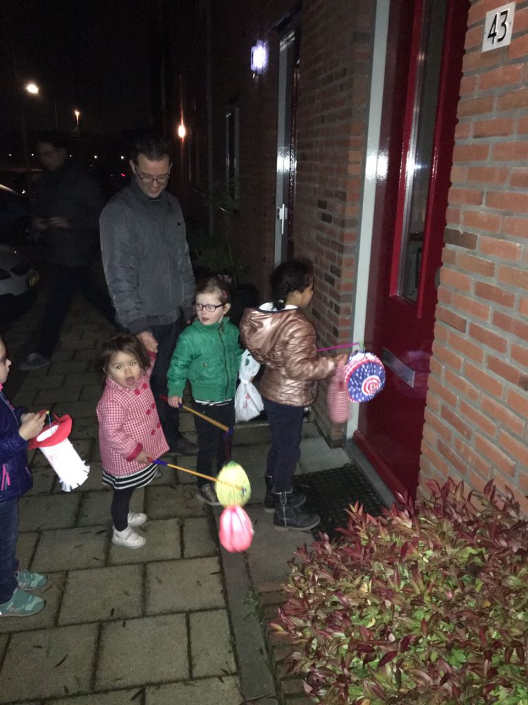 Veel enthousiaste kinderen liepen langs de deuren in Schuytgraaf, van redelijk groot tot heel erg klein. Sommige kinderen hadden flink hun best gedaan op de lampion. De mooiste die ik me herinner was een zelfgemaakte uil. Jammer genoeg vergeten er een foto van te maken.