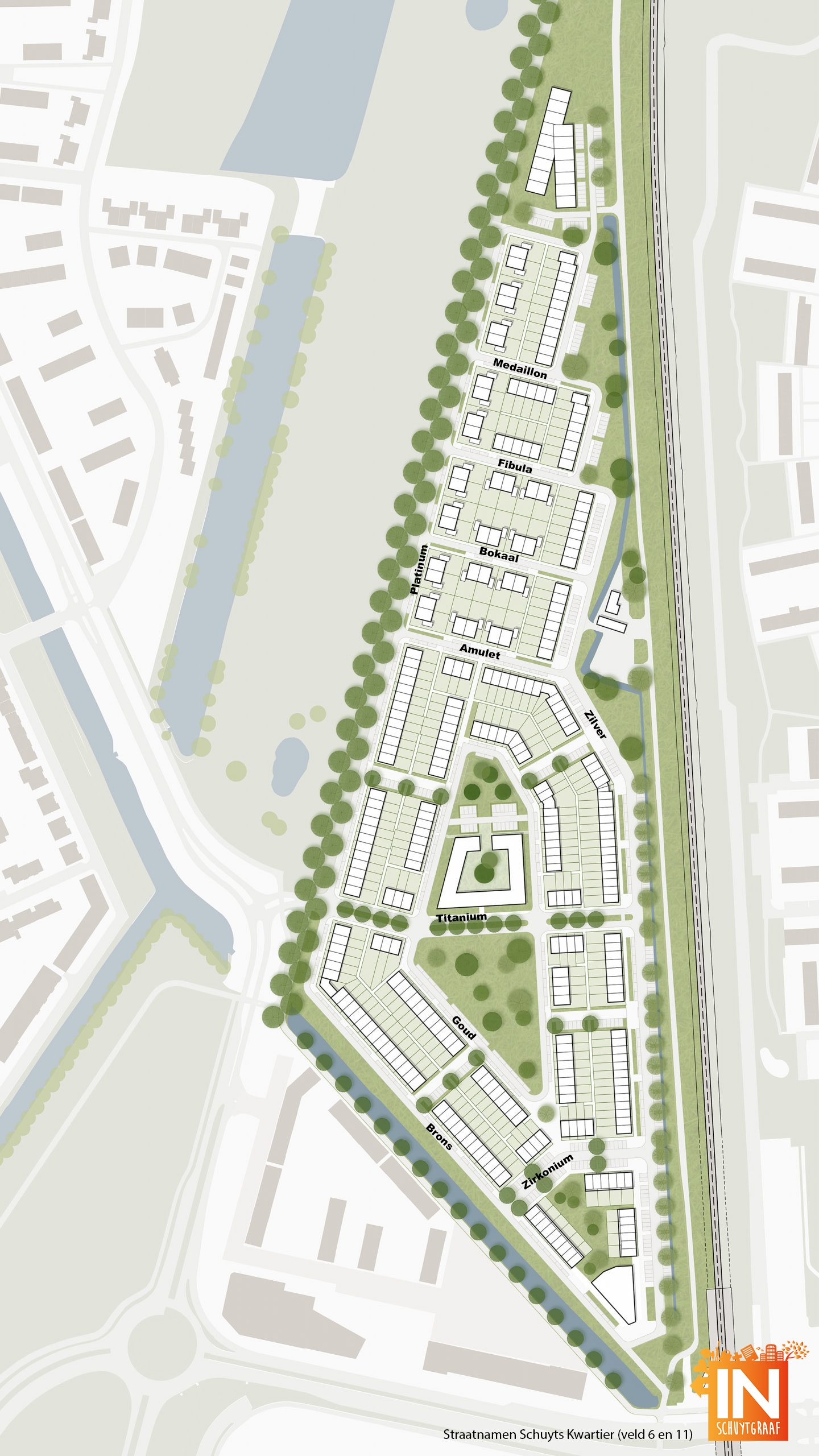 Parallel aan het spoor wordt het nieuwste buurtje van Schuytgraaf ontwikkeld. Hier is gekozen voor het thema metalen. Bekende metalen zoals Goud, Zilver en Platinum zullen straatnamen zijn in het Schuyts Kwartier, maar ook minder bekende metaalsoorten zoals Fibula en Zirkonium zal verschijnen op de straatnaambordjes in dit buurtje.