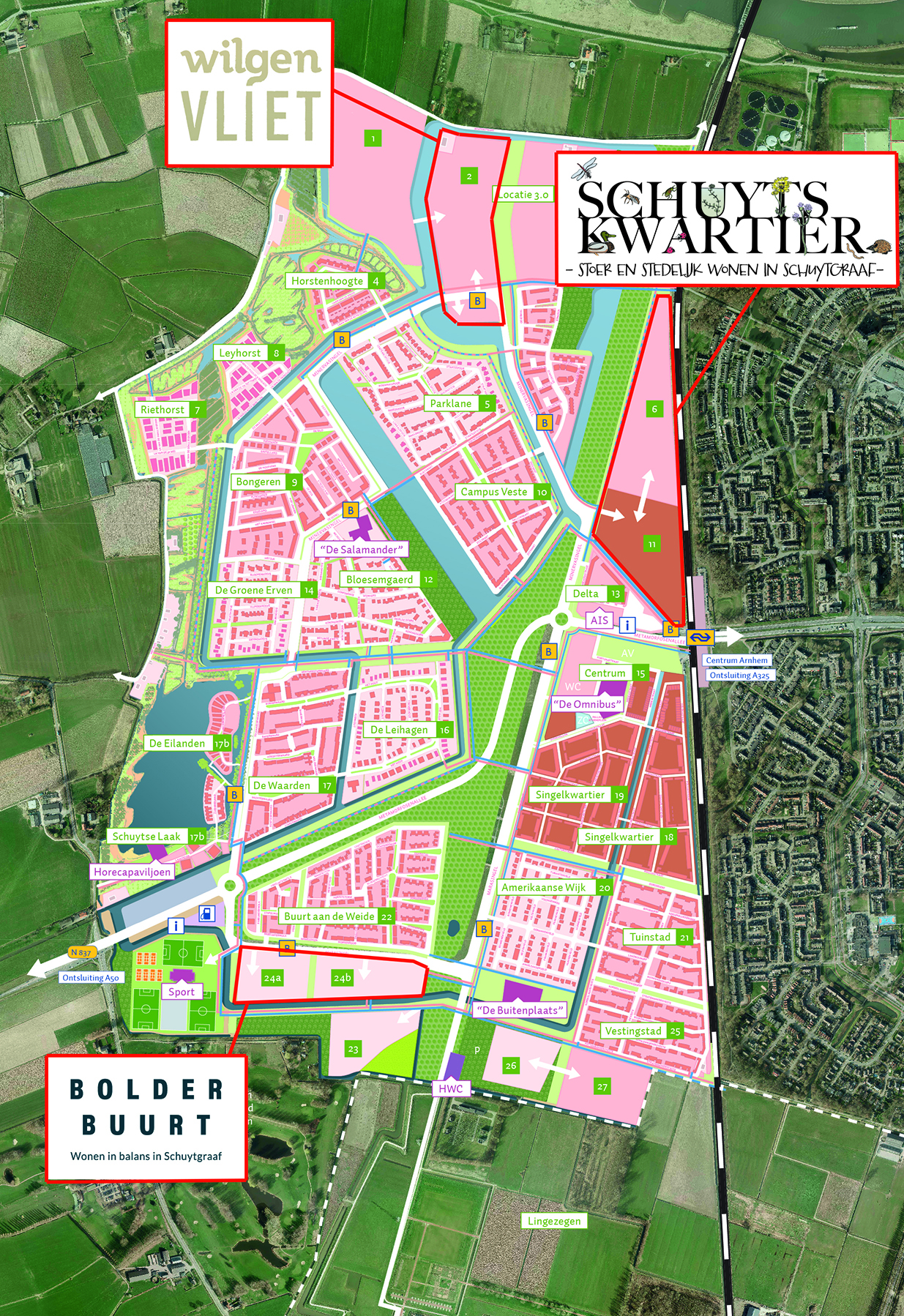 Momenteel zijn er drie velden in aanbouw waar de aankomende jaren circa 840 woningen gebouwd worden. De straatnamencommissie van de gemeente Arnhem heeft jaren geleden de straten al bedacht voor deze velden en onlangs zijn ze ingetekend in het stratenplan van deze velden.