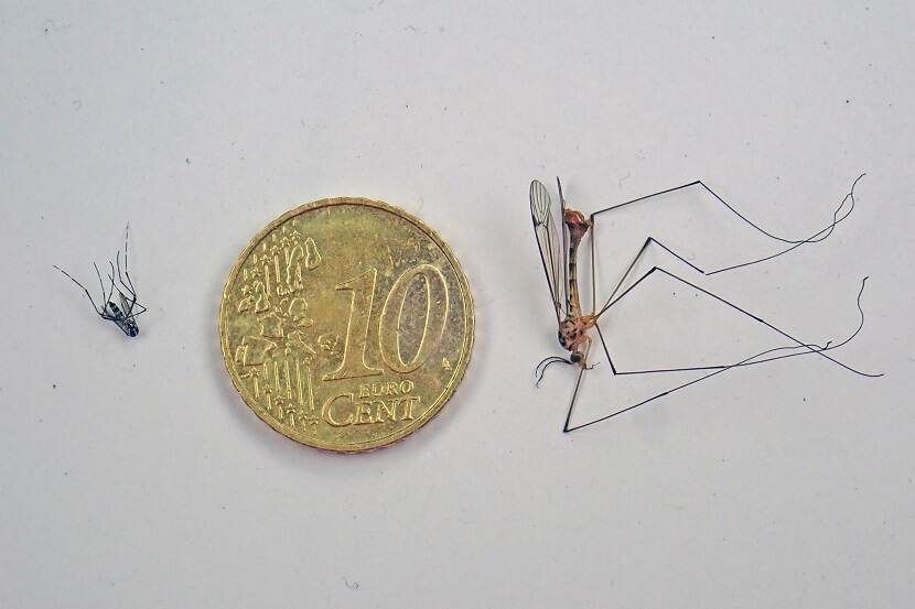 De mug aan de linkerkant is een tijgermug. De mug rechts van het muntje is een langpootmug.
