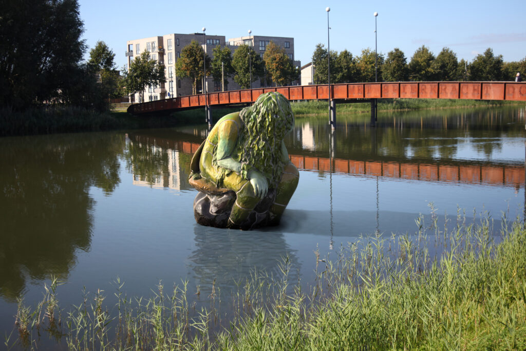 Op donderdag 24 oktober vindt zowel de plaatsing als de feestelijke onthulling van het kunstwerk van Larissa Esvelt plaats. Een plompe, beetje ‘grumpy’ waternymf lijkt zojuist van onder het wateroppervlak naar boven te zijn gekomen. Haar hoofd is bedekt met waterplanten, het glanzende oppervlak lijkt nog nat van het water.