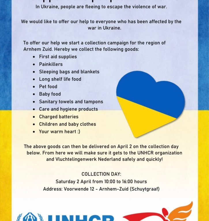 Vluchtelingenwerk Nederland hebben verschillende wijkbewoners van Arnhem Zuid het initiatief genomen om een inzamelingsactie te organiseren. Je zult wel denken, alweer een actie? Maar zoals je wellicht wel via de verschillende media heeft meegekregen is deze oorlog nog niet ten einde en is en blijft de nood voorlopig hoog Daarom voelen we ons geroepen om een steentje bij te dragen.