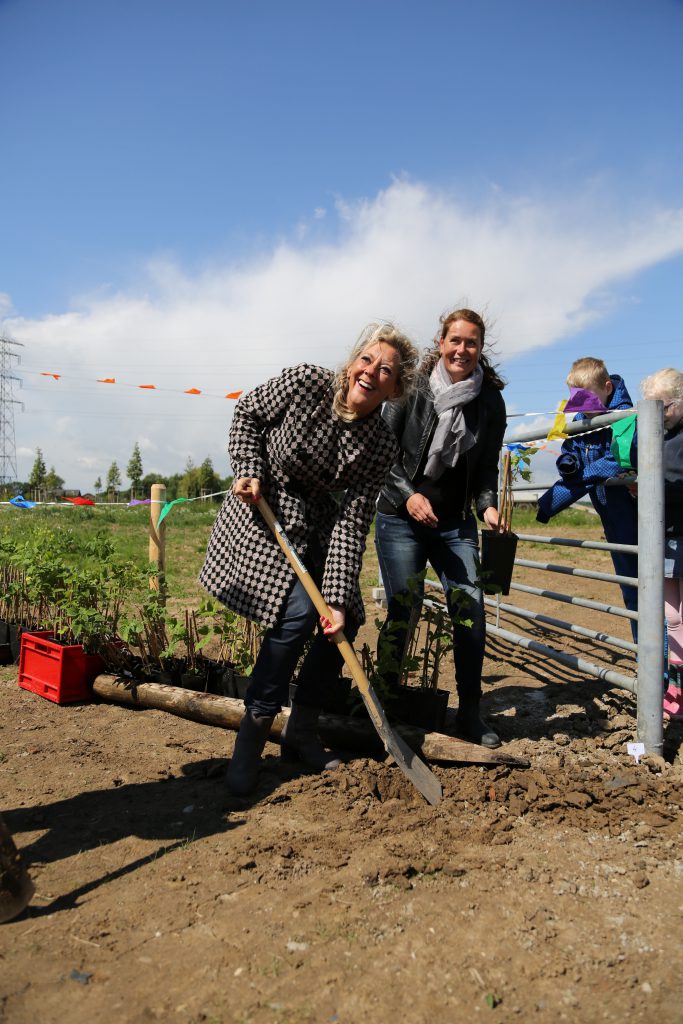 Inge de Zwart is blij dat het er staat. De Zelfoogsttuin, waar zij initiatiefnemer van is, is zaterdag 31 mei officieel geopend. Dit gebeurde symbolisch met de aanplant van een frambozenstruik door wethouder Ine van Burgsteden.